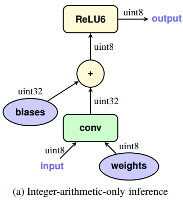 - normalized multiplier M0은 fixed-point multiplier로 표현되기 적합하고, 2^-n은 bit-shift로 구현될 수 있다.